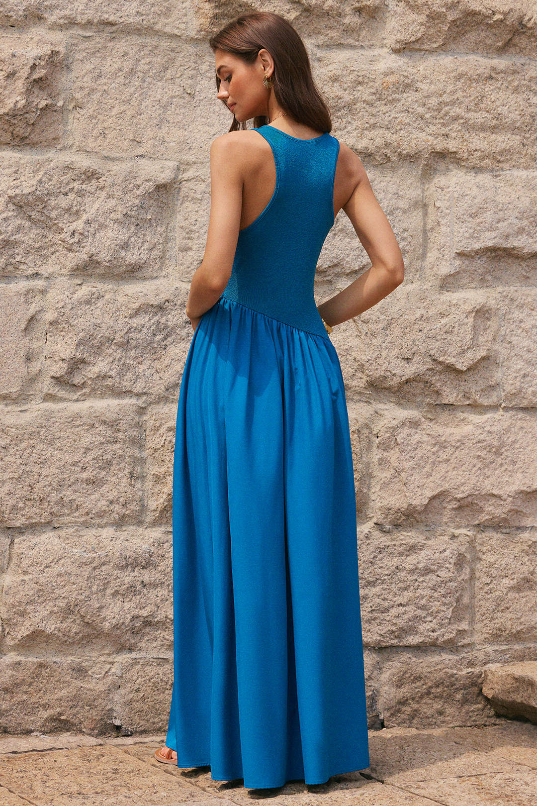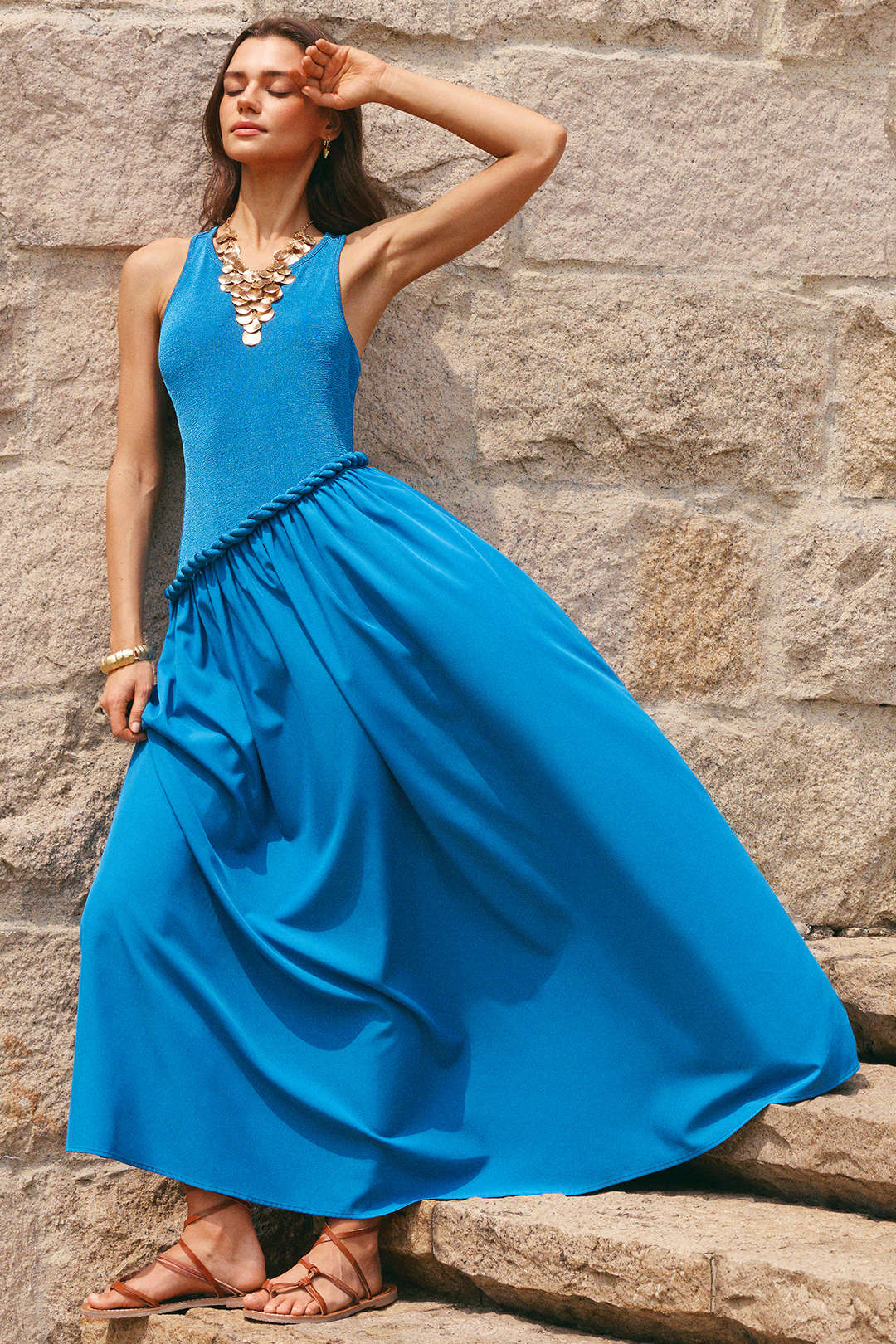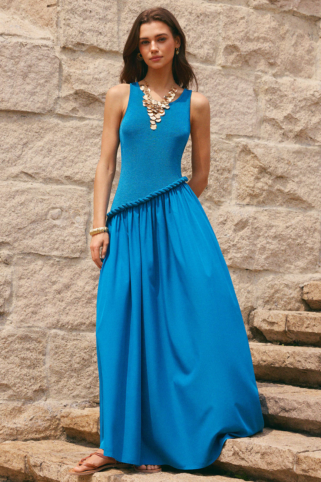 Patchwork Round Neck Twist Knot Sleeveless Maxi Dress
