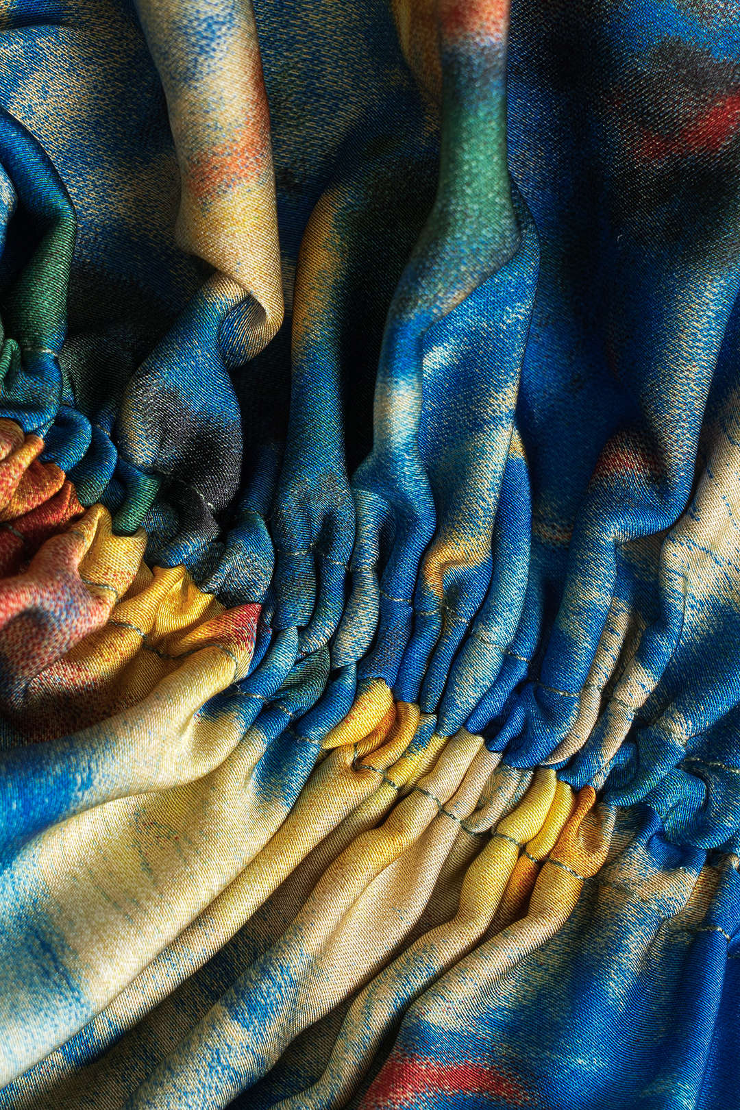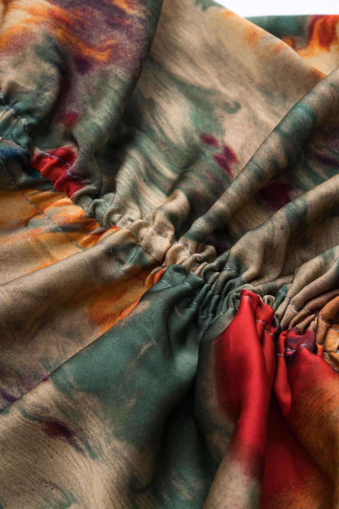 Watercolor Print Satin Ruched Drawstring Slip Mini Dress