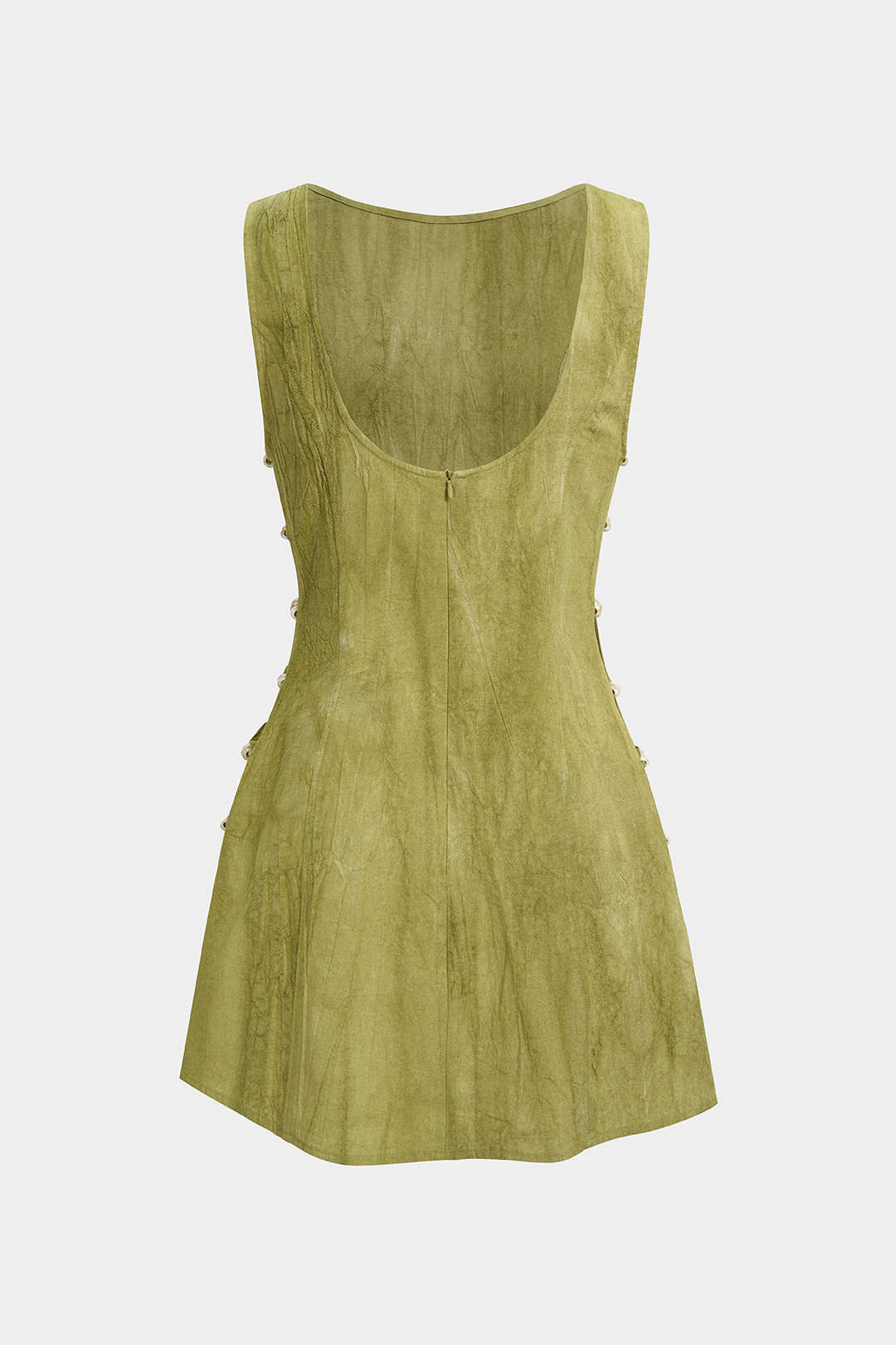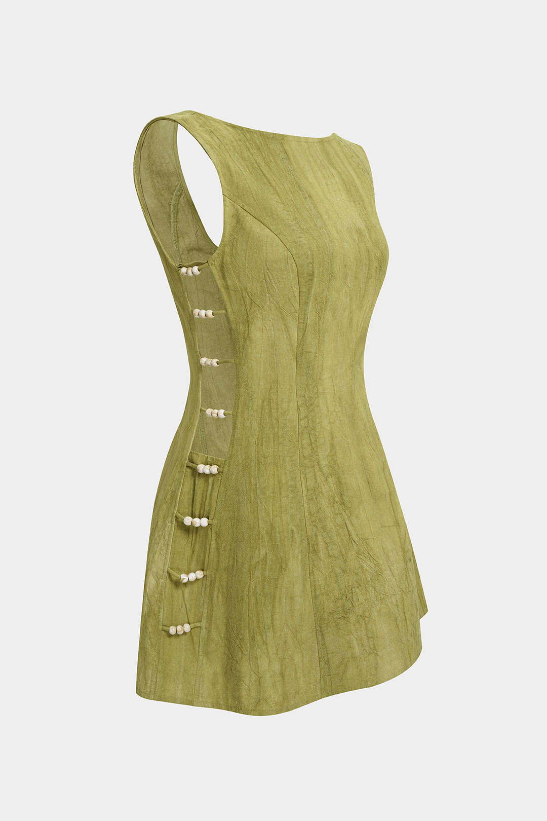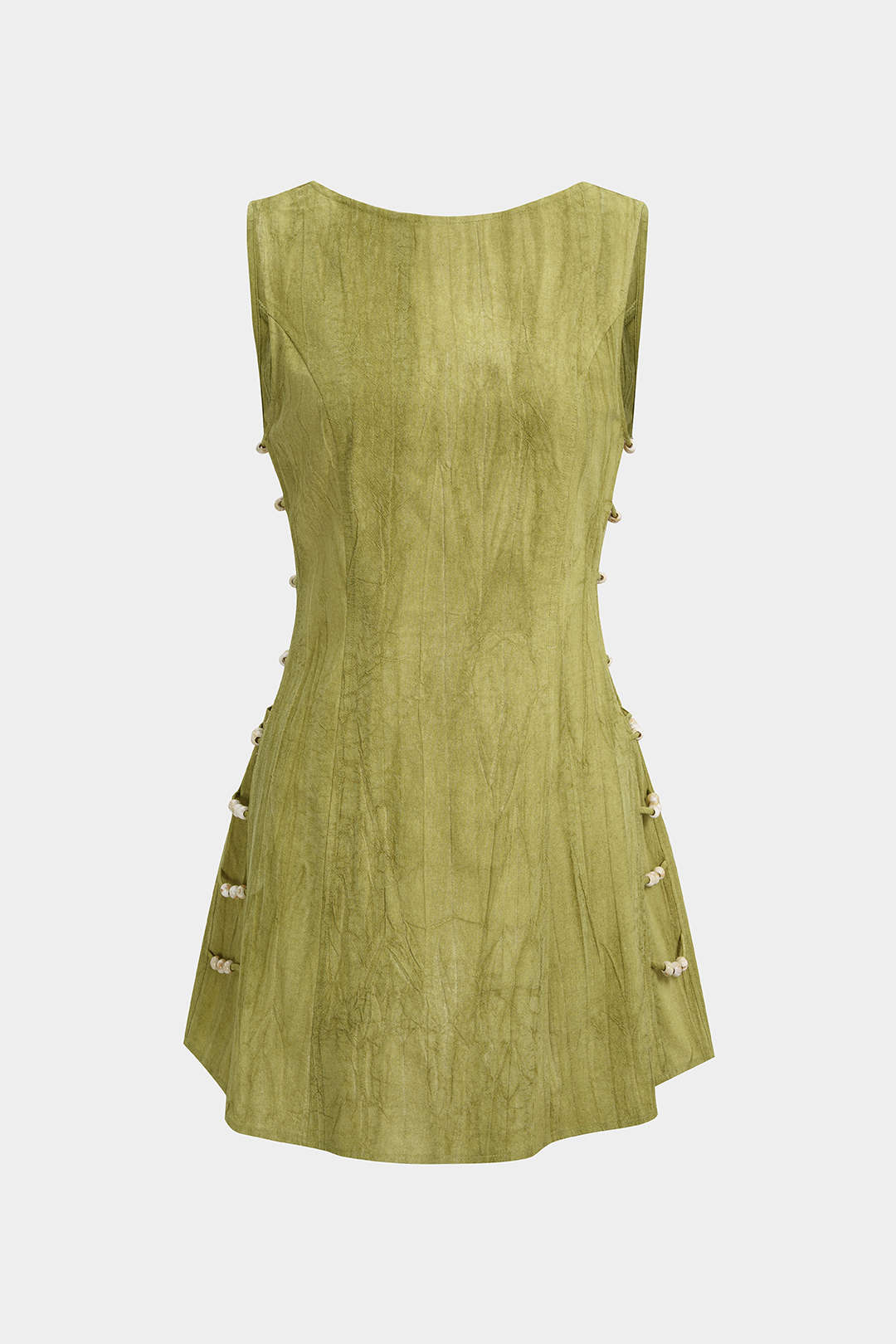 Linen Beaded Backless Cut Out Sleeveless Mini Dress