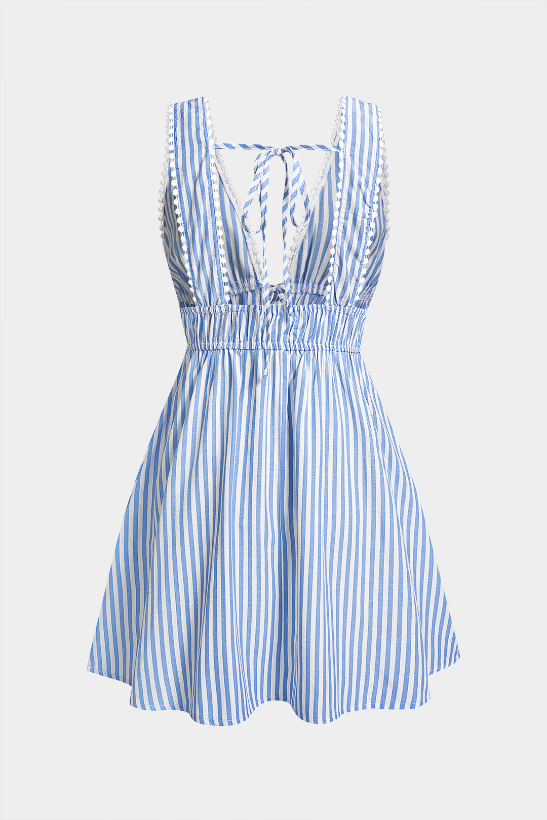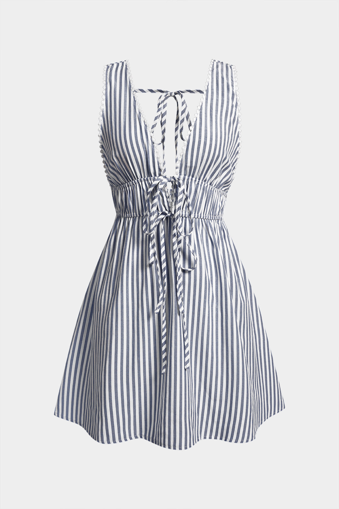 Stripe Print V-Neck Tie-Up Backless Sleeveless Mini Dress