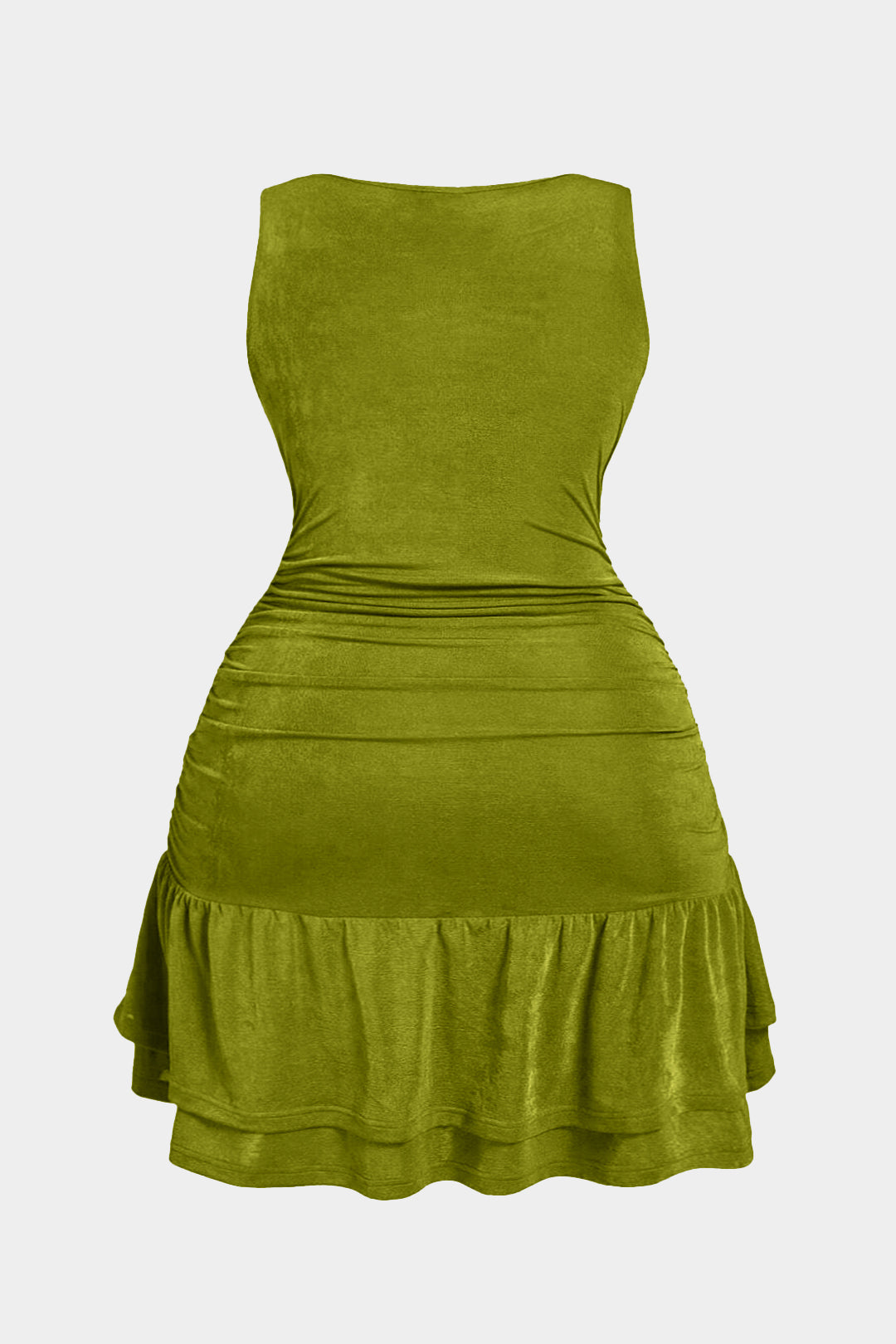 Mini vestido sin mangas floral 3D fruncido con volantes de talla grande