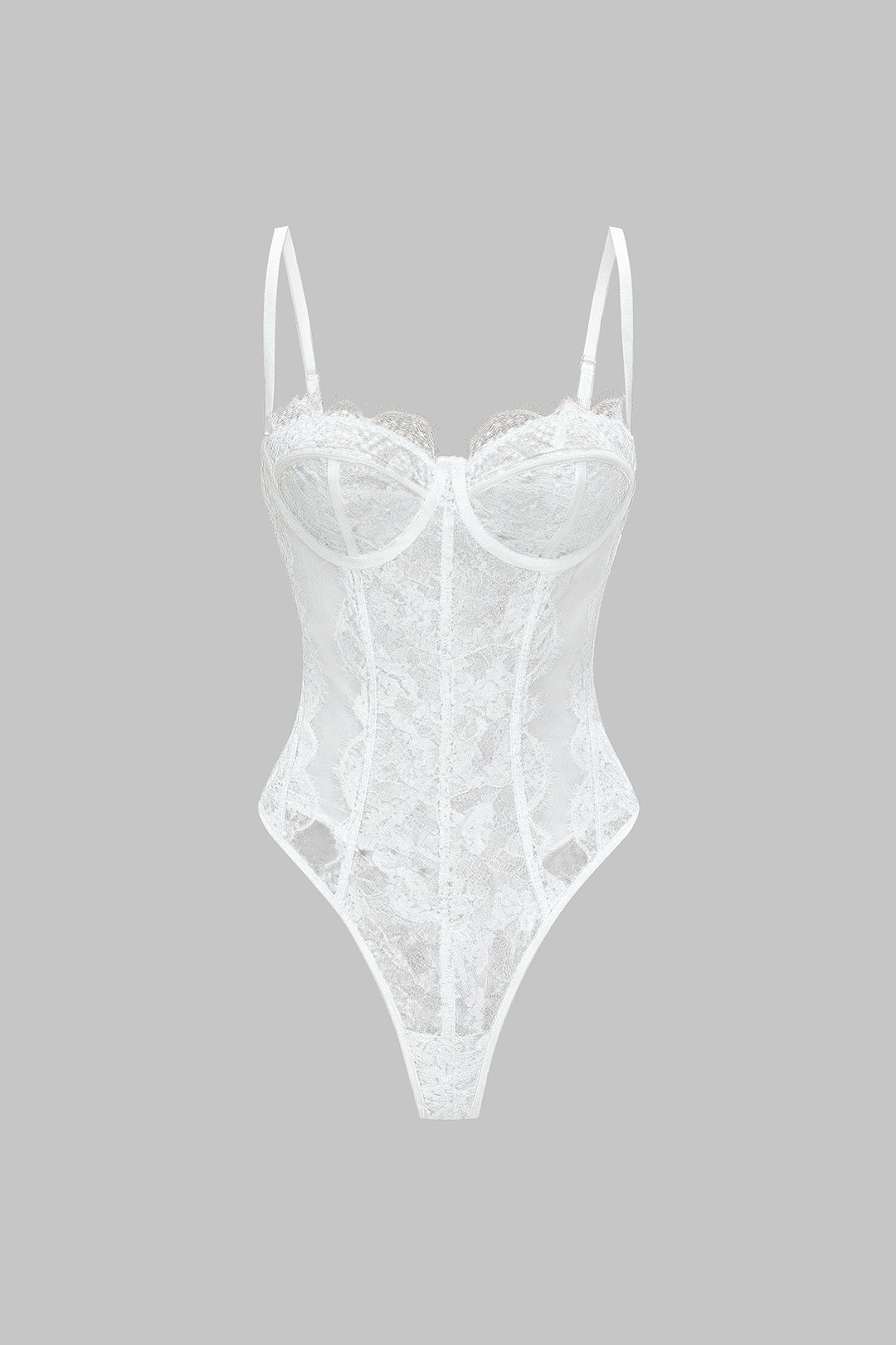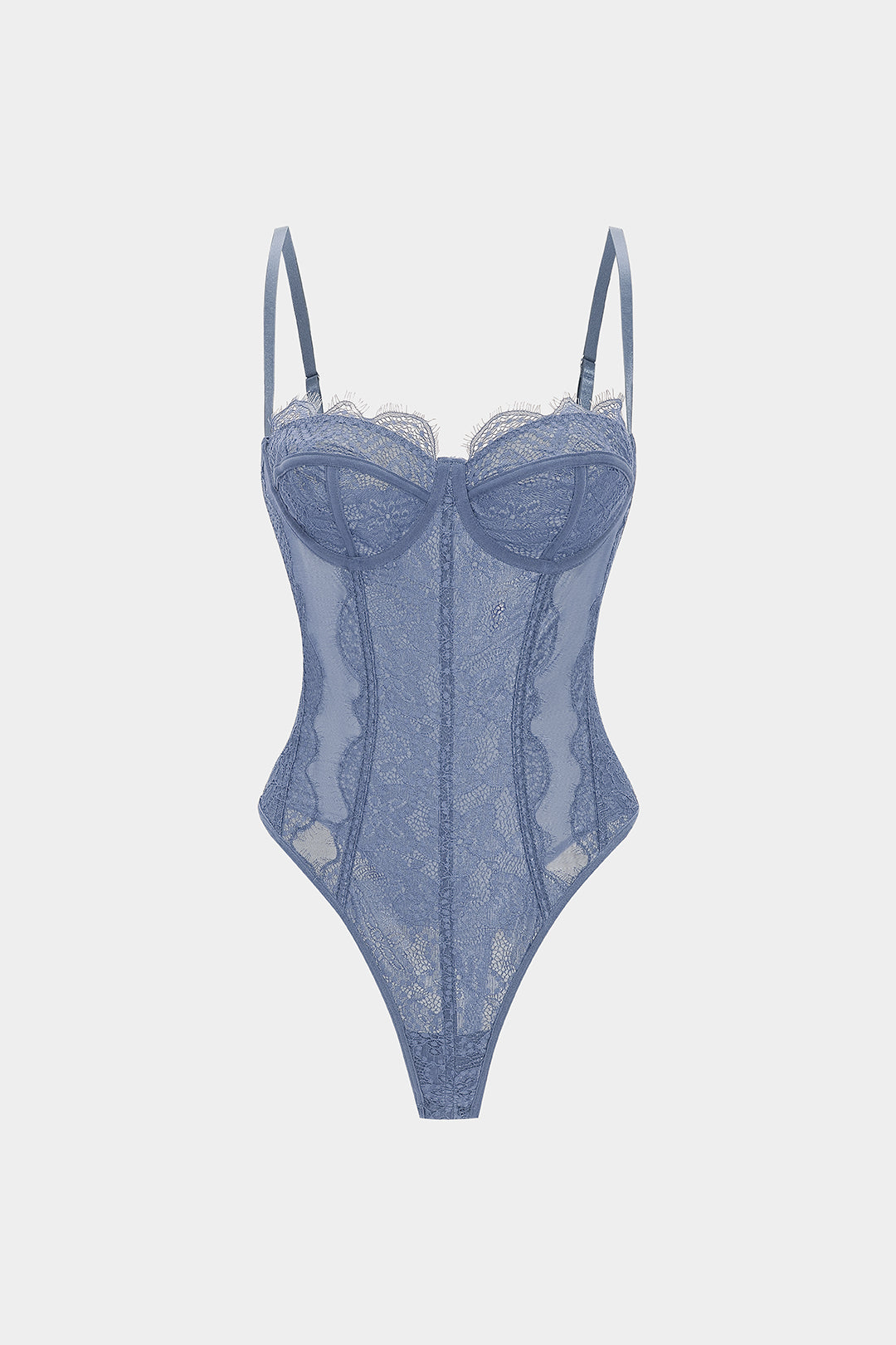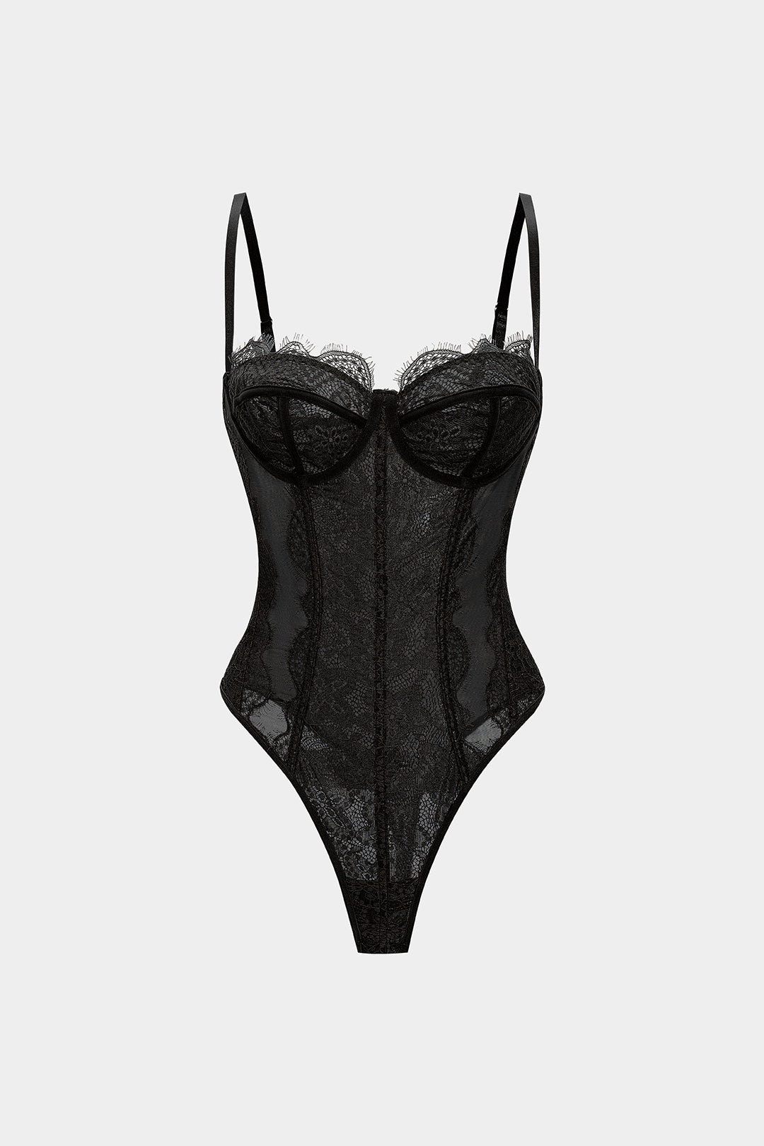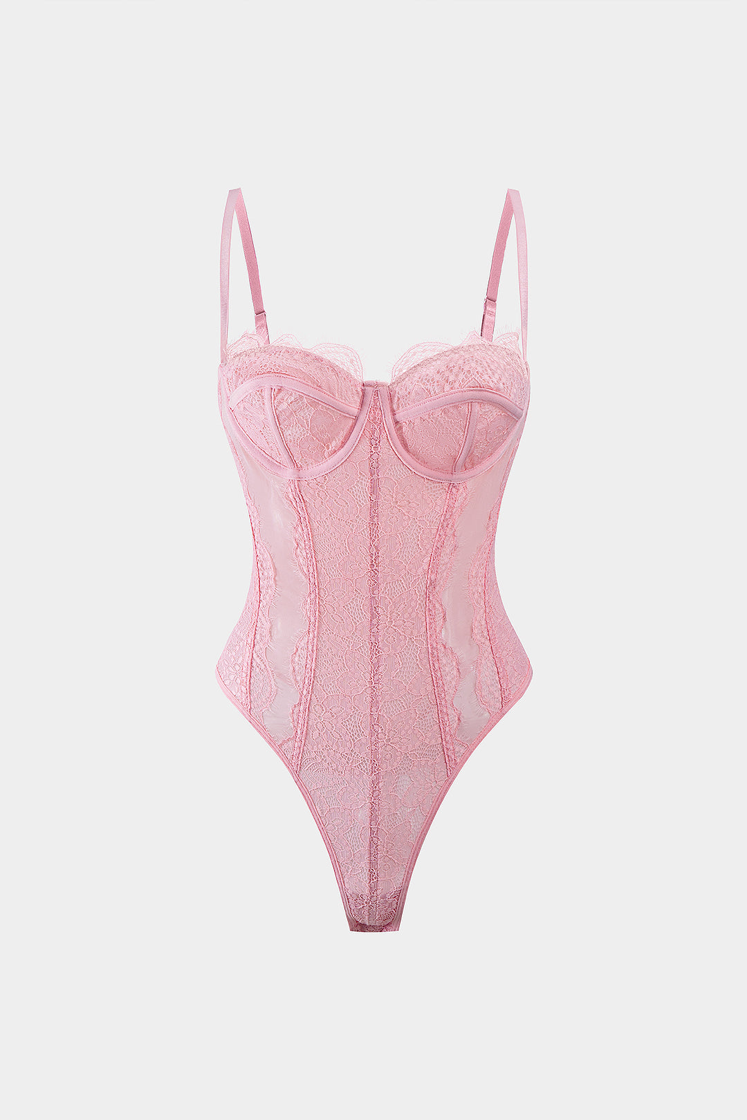 Mesh Sheer Patchwork Bustier Corset Slip Sleeveless Bodysuit