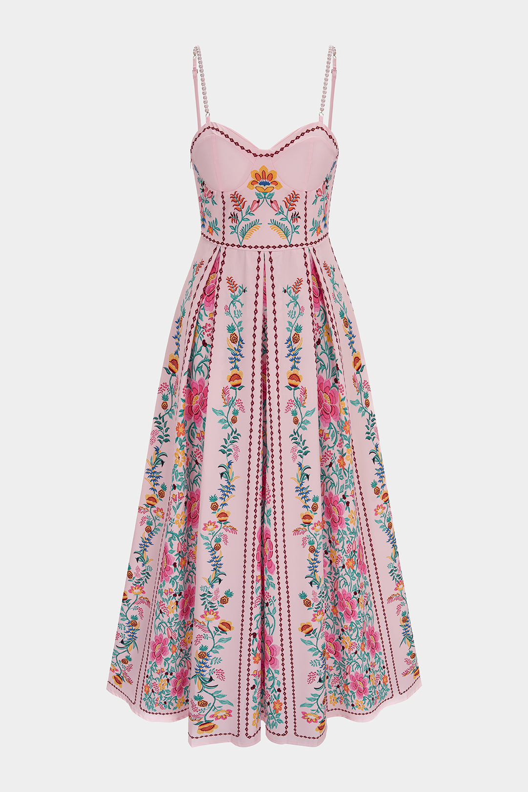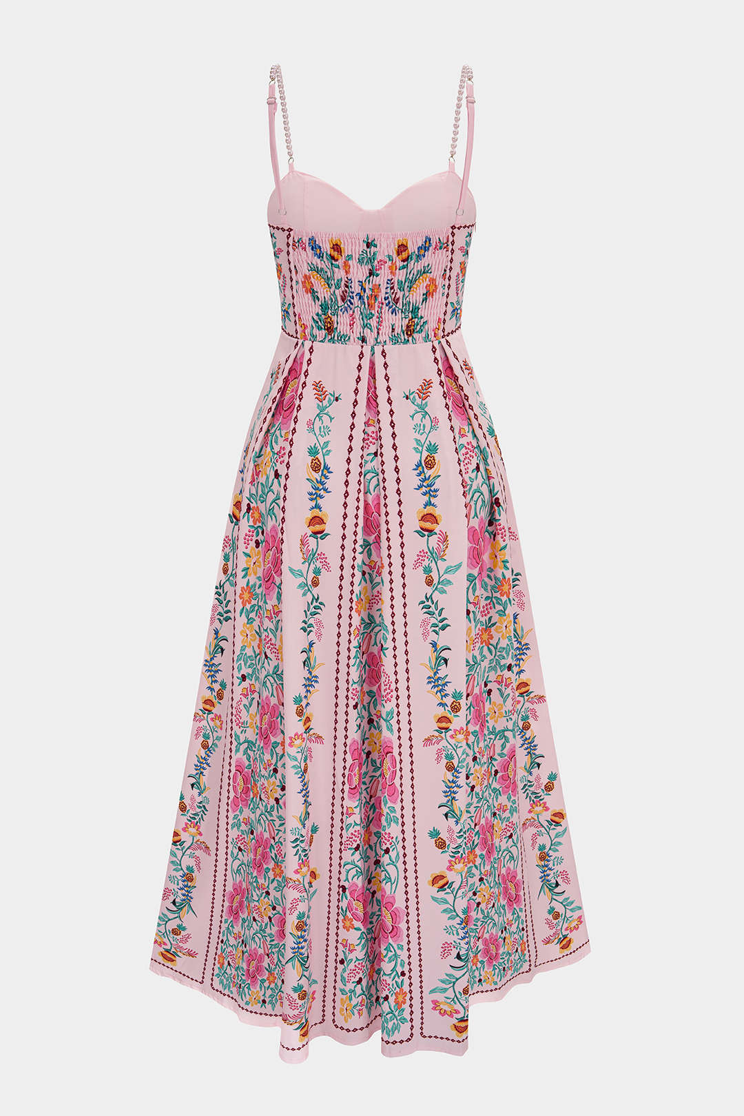 Floral Print Beaded Slip Sleeveless Midi Dress