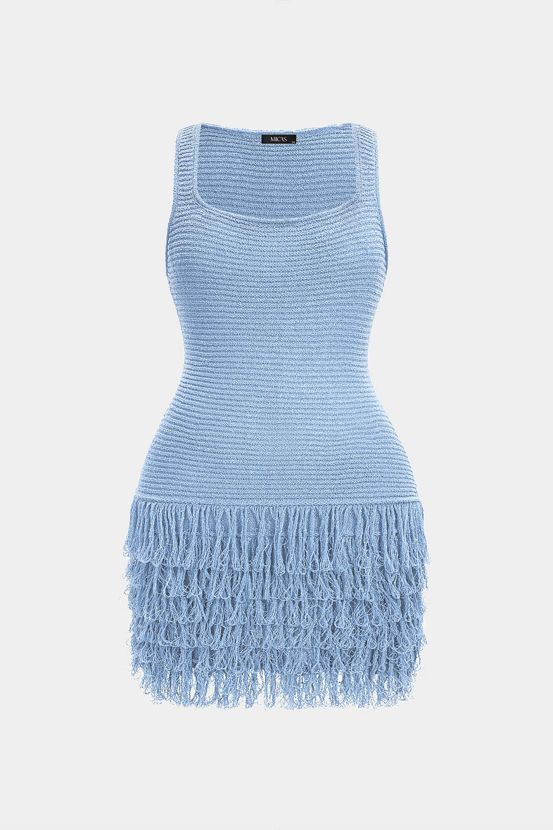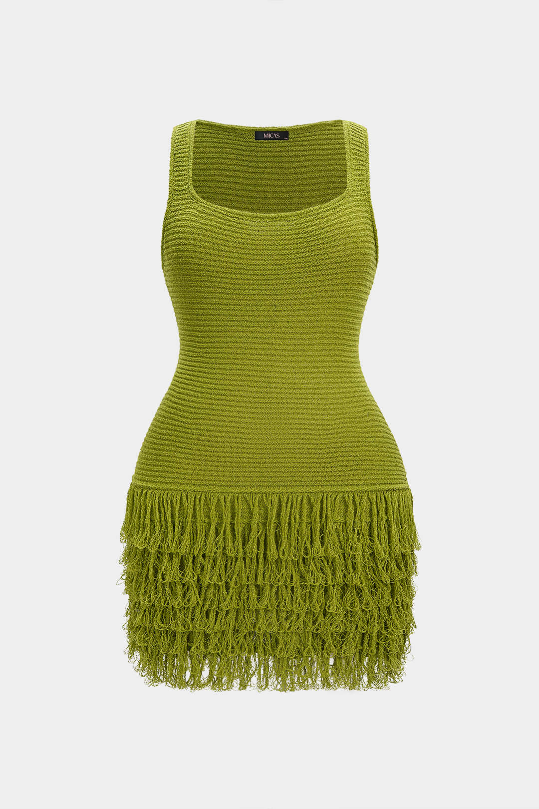Plus Size Knit Square Neck Fringe Sleeveless Dress