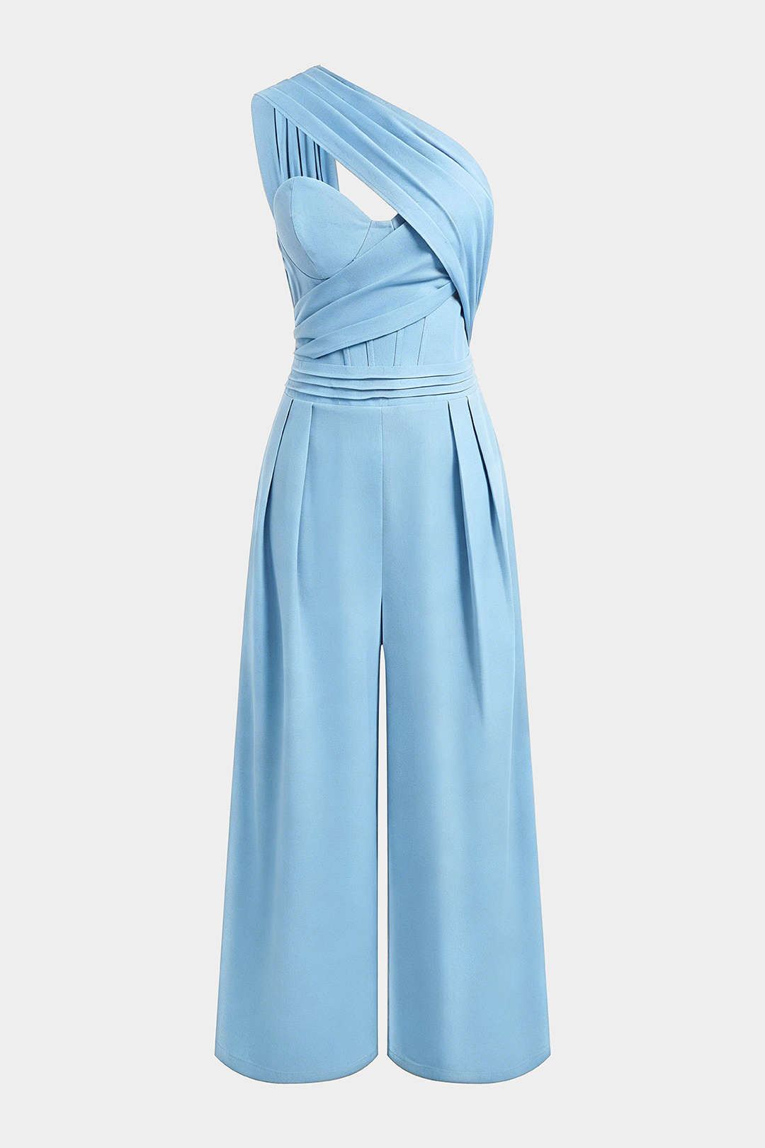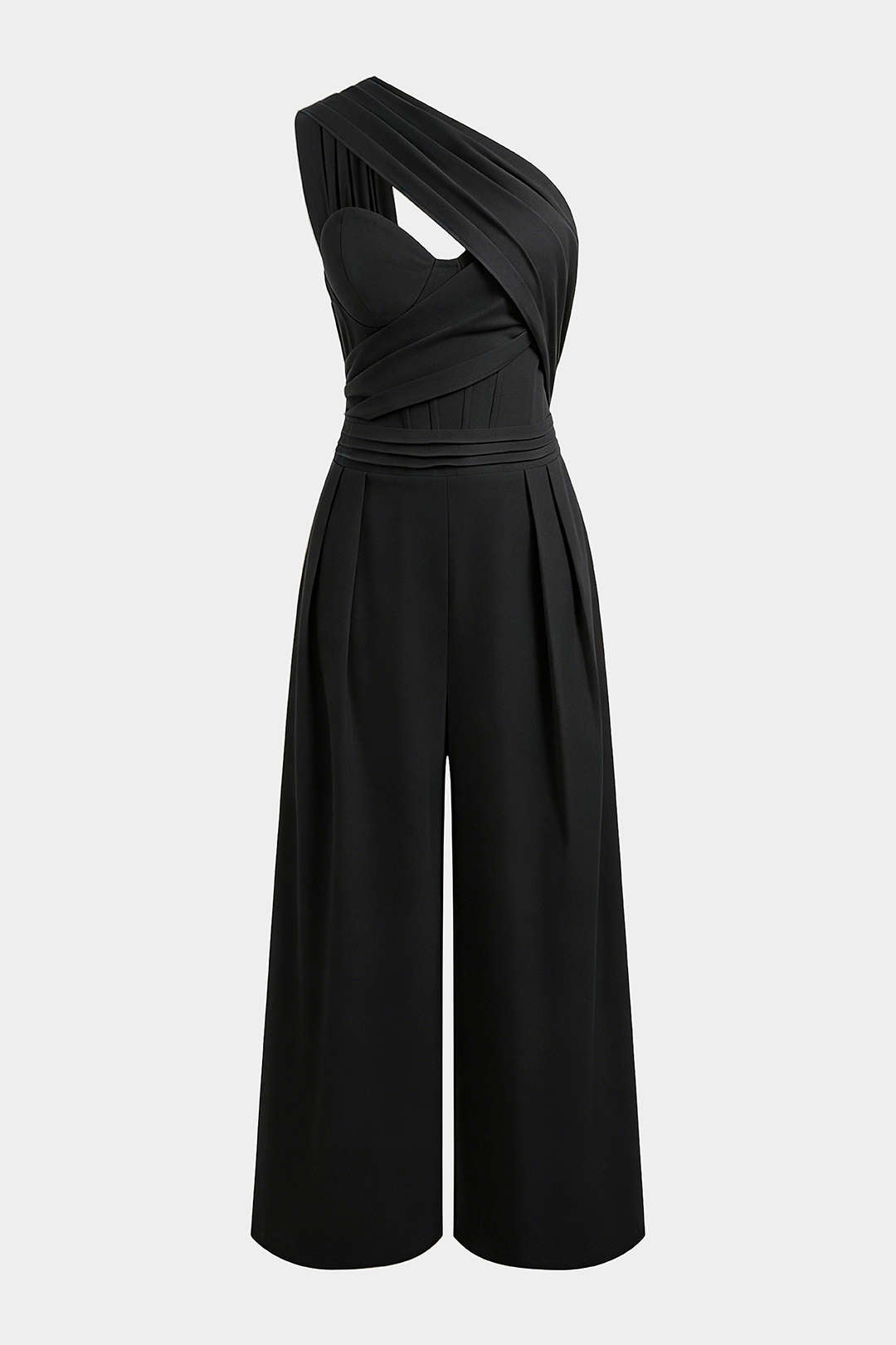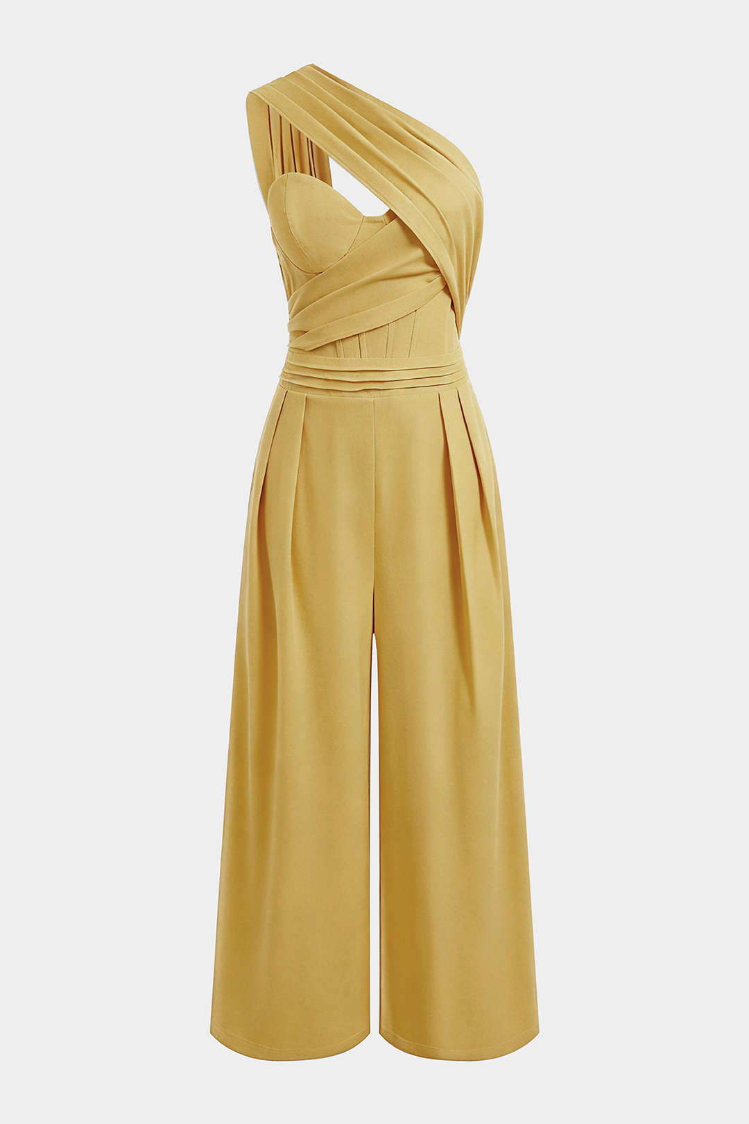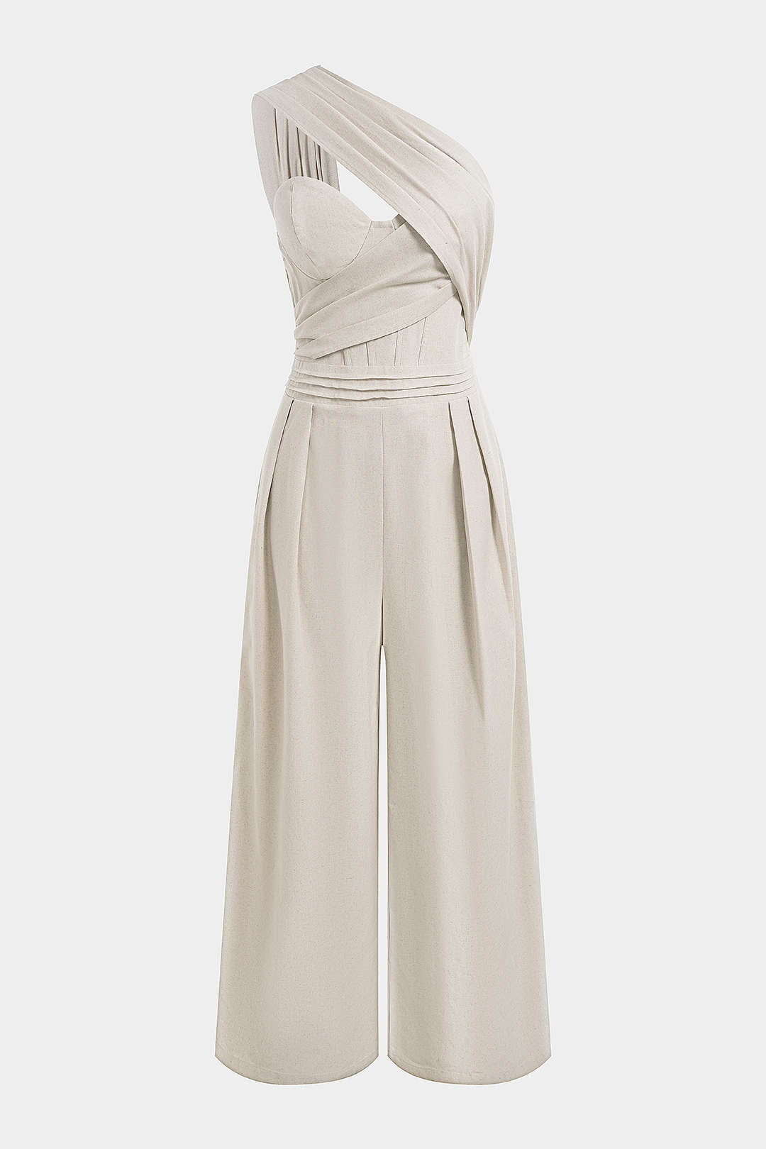 Linen One Shoulder Asymmetrical Ruched Sleeveless Jumpsuit